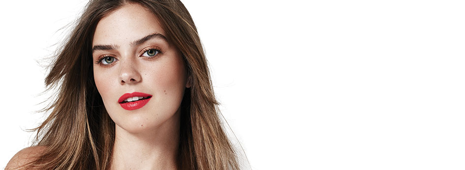 “If I do a bright lip, I love to see freckles and fresh skin.  Highlights the cheeks, and then keep the rest of the face minimal.